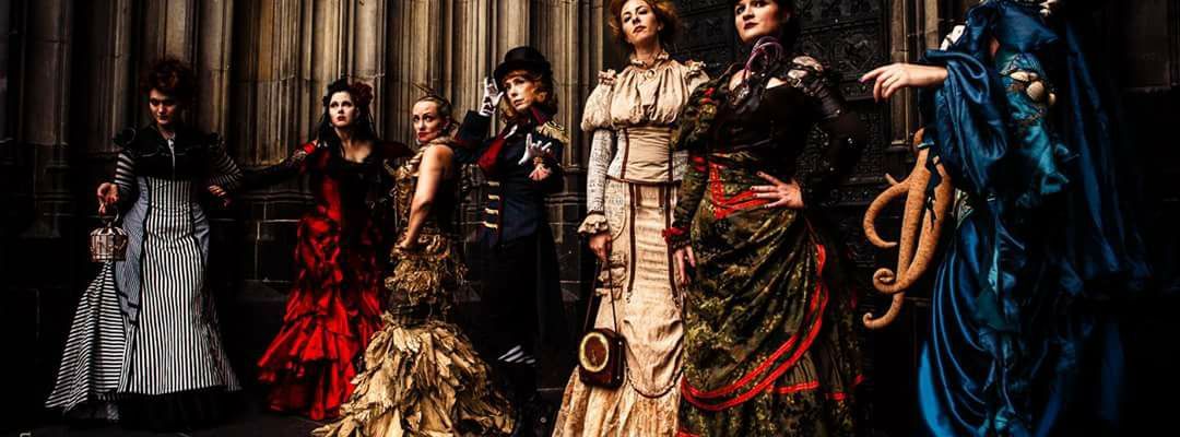 Yes, I accidentally switched channels on tv and saw some scenes of a movie I didn’t know but the girls wore such incredible dresses with tiny waists, giant long dome-like skirts and it was so magical, so beautiful! As a child, I did not understand or know much about that time period in history, neither I understood the movie, but I just couldn’t stop daydreaming about those dresses. Being a very visual person, I instantly recognized the print on Scarlett’s iconic bbq dress – it was that of my mother’s kitchen curtains! I had to make that dress for my Barbie… and then the one Scarlett wore in the first scene, one with white ruffles and red belt… With time, I learnt how to sew on my grandmother’s old Singer machine, she taught me how to prepare patterns, treat the seams, make buttonholes… To me, playing with dolls was to create dresses for them, change their outfits, make their furniture and decorate their interiors. Years later, when we found WGT festival, Mera Luna and local gothic clubs with special dress code, I started sewing and modifying clothes for myself and my friends. At the time I lived in Finland and couldn’t afford real fabrics, so was mostly sourcing materials from second stores and fleamarkets, and guess what?! – it was always either curtains, or upholstery leftovers or even bed sheets! I couldn’t afford a sewing machine, so early costumes were sewn partly by hand and partly on my friend Molla’s machine, whenever I had the chance to visit her. So sewing out of curtains and household fabrics was with me all along the way, and even now too!