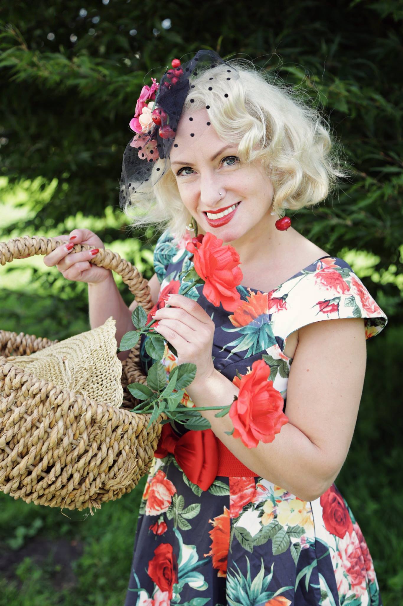 September Greetings with Cherries & Roses